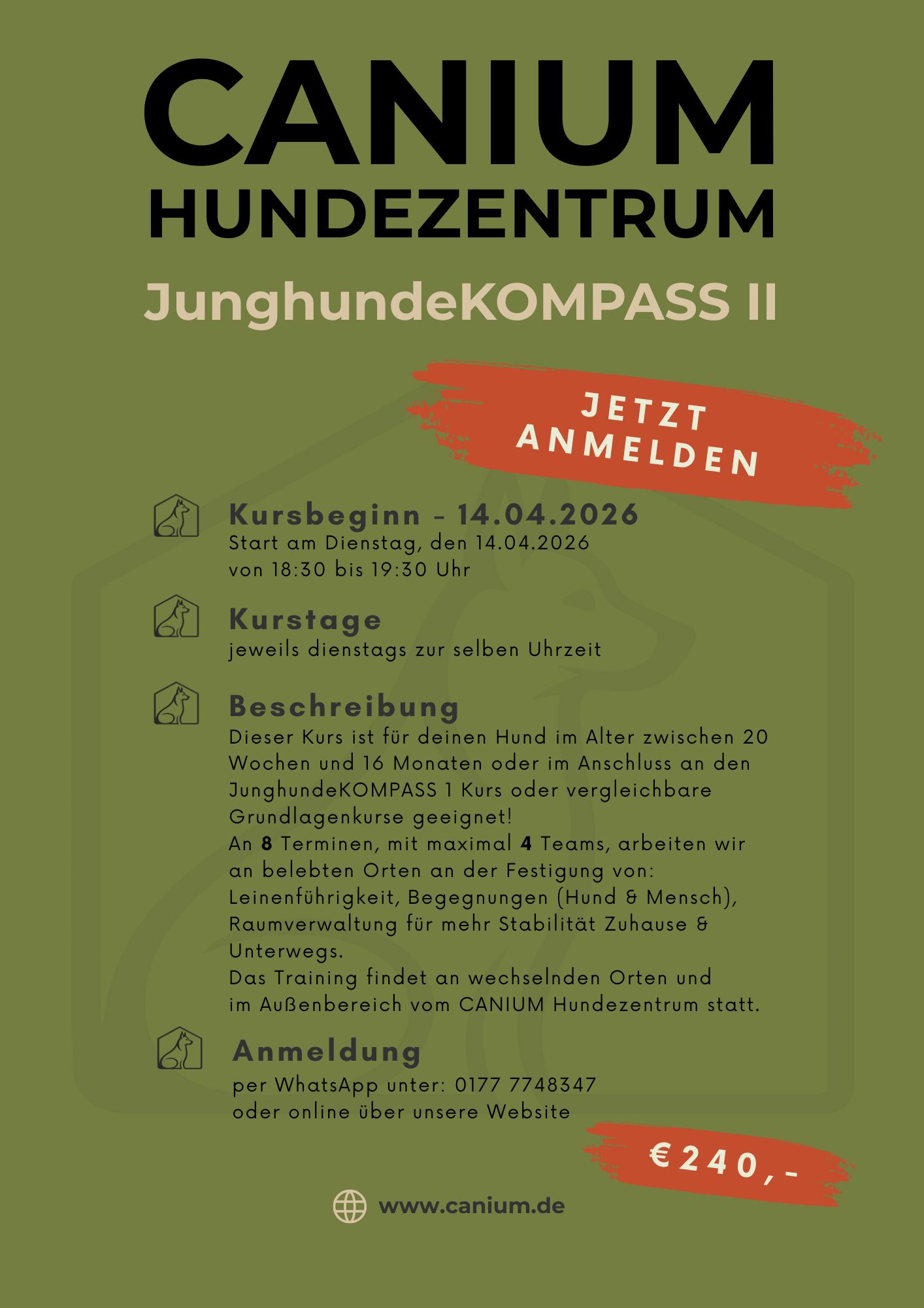 Folgekurs zum JunghundeKOMPASS 1 oder vergleichbaren Angeboten unserer Mitbewerber.